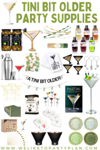 Martini Bar: Create a dedicated area for your martini bar. Include all necessary ingredients, colorful garnishes, and tools so your guests can make their own drinks. Plus fun accessories.